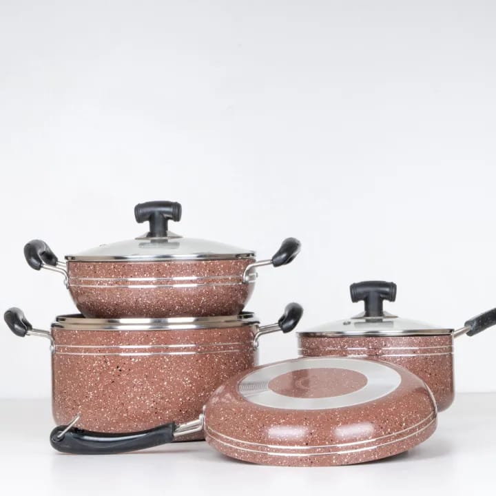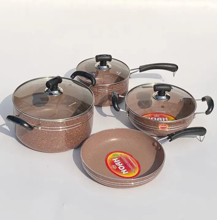 The new NOAH marble coated set is made of marble coating from Greblon Germany. Get this complete set that meets all your cooking needs in the kitchen. We use high-quality non-stick coating from Greblon, Germany to reduce the oil used for cooking and make your food more healthy. The non-stick coating is firmly locked into the base for long-lasting durability. The heavy bakelite handle used in the product does not heat up easily. The exterior paint is high heat resistant. NOAH Group is one of Bangladesh's oldest and most respected business conglomerates in the Cookware and kitchen appliances sector. We take pride in the quality of our cookware.