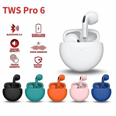 Pro 6 TWS Bluetooth Earphones for iPhone Wireless Bluetooth Headset Noise Cancelling Earbuds with Mic Pro6 Wireless Headphones